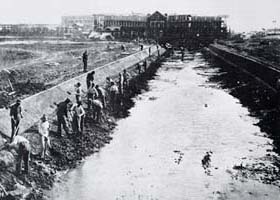 Digging the canals in 1904 was back breaking work |