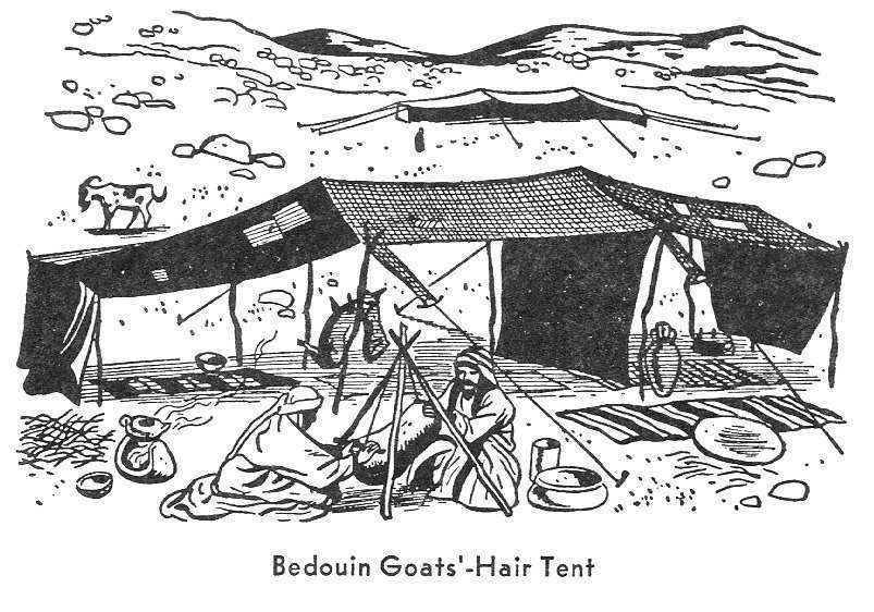 Tent DwellingsIN THE BIBLE, living in tents is of ancient origin. It goes back before the days of Abraham. The first reference in the Scriptures to tent life is concerning the man Jabal, of whom it is said, "he was the father of such as dwell in tents" ( Gen 4:20). Following the Flood the Sacred Record says, "God shall enlarge Japheth, and he shall dwell in the tents of Shem" (Gen 9:27).The patriarchs Abraham, Isaac, and Jacob lived most of their lives in tents, in and around the land of Canaan. It was said of Abraham that he "pitched his tent" in the vicinity of Bethel ( Gen 12:8), that Isaac "pitched his tent in the valley of Gerar" (Gen 26:17), and Jacob "pitched his tent before the city (of Shechem)" (Gen 33:18).The Children of Israel lived in tents during their forty years in the wilderness. Moses said of them, "The children of Israel shall pitch their tents, every man by his own camp" ( Num 1:52). And Balaam "lifted up his eyes, and he saw Israel abiding in his tents according to their tribes" (Num 24:2).For many years after the entering of the Promised Land, Israel still lived in tents. In the days of David it was said to the king, "The ark and Israel and Judah, abide in tents" ( 2Sa 11:11), indicating that many of the people at that time were tent-dwellers. Even at the time of the revolt of the ten tribes under Jeroboam and their separation from Judah, the cry went forth, "To your tents, O Israel" (1Ki 12:16).When the tribes gathered together at such small places as Gilgal, and Shiloh, they undoubtedly brought their tents with them. And after the temple was built at Jerusalem the people would make their pilgrimages there to celebrate the feasts of the LORD, and many thousands of them would sleep in tents on the mountains surrounding the city.1 Like the Jews of old, the Nomad or Bedouin Arabs of Palestine, and especially those of Trans-Jordan, have been living in tents for centuries, and their manner of life is strikingly like unto that of the early Bible characters. A study, therefore, of these tent structures of Bible lands of today will throw much light on how the men of early Bible times actually lived. By such a study one can build the proper background for understanding the life and contributions of these men of the long ago.2 TENT MATERIAL