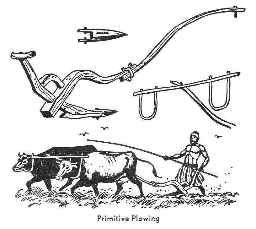 These yokes of wood are often spoken of in the Scriptures ( Jer 28:13, etc.).The goad. A goad is carried by the native ploughman today, and was also used in Bible times. It is a wooden rod varying in length from five to seven feet, with a sharp point at one end. With this the farmer can hurry up his slow-moving animals.5 It was such an ox-goad that was used by Shamgar in slaying six hundred Philistines ( Jdg 3:31). The conviction of sin that came to Saul of Tarsus and led to his conversion was compared to the pricks of an oxgoad: "It is hard for thee to kick against the pricks [goad]" (Act 26:14).ANIMALS USED IN PLOUGHINGUse of oxen. In Bible times oxen were used almost exclusively for ploughing. For this reason the expression "a yoke" was used by the Hebrews to mean the measure of land which a yoke of oxen could plough in a day (cf. 1Sa 14:14, and Isa 5:10). "Oxen" as the Hebrews used the term, meant both sexes of the animal, cows being used as well as bulls for purposes of draught, but the latter were castrated.6This explains the reason for the law specifying concerning a heifer to be used for sacrificial purposes, that it be one "upon which never came yoke" ( Num 19:2). The law of Moses forbade ploughing with an ox and an ass yoked together (Deu 22:10). The Apostle Paul spoke of "the unequal yoke" in connection with partnership between believers and unbelievers (2Co 6:14).Today, the Arabs usually make use of oxen in ploughing, but sometimes utilize camels, and occasionally yoke together an ox and a donkey, or a camel and a donkey.7 PREPARING THE SOIL FOR THE CROPPloughing. The ploughing of the ground in Oriental fashion is quite primitive. The plough, which at best is a slight implement, can be carried if necessary two miles to the farmer's place of work. Of course by comparison with modern ploughs, it could be said merely to scratch the surface at the soil. The ploughman holds the one handle of the plough with one of his hands, while he carries the goad in the other hand, with which to prod the animals. JESUS said, "No man, having put his hand to the plough, and looking back, is fit for the kingdom of God" ( Luk 9:62). He described the operation accurately in saying hand, i.e. one hand, rather than two hands, as is the case with a Western farmer. It would be fatal for the Palestinian farmer to look back, because his implement is so light that the worker often has to press down with all his weight upon it to keep it from leaving the furrow.8The Eastern farmers will sometimes plough together, each man having his own plough and team of oxen, and one following close behind the preceding one. This sort of farmer's club is adopted as a protection from roving Bedouin robbers, and also because co-operation is desired when the wheat farms are large.9 Thus Elisha was found ploughing with eleven other ploughmen and a total of twenty-four oxen ( 1Ki 19:19).Use of pickax or mattock. Where the ground is hard, or on the rocky hillside, it is not possible to use the plough. In such places, if the peasant farmer is industrious, he will prepare the soil by using the pickax or mattock. Isaiah speaks of "hills that shall be digged with the mattock" ( Isa 7:25). By using such an implement, all the available ground is utilized for the crop.10Fertilizer seldom used. The Eastern farmer seldom adds fertilizer to his soil in raising grain. Many a hillside used by the farmer for his crop has a quantity of small, soft lime-stones scattered over it. Part of the lime in the stones is dissolved with each rainstorm, and mixing with the soil, makes it better qualified for a good stand of grain. These stones take care of liming the soil.11 Modern Jews, returning from the West to farm their land, are adding various chemicals from the Dead Sea as fertilizer for their soil. But there is no mention in the Bible of fertilizing the ground for a grain crop. JESUS did mention in one of his parables about the fertilizing of a fig tree ( Luk 13:1-9).SOWING THE SEEDKinds of grain sown. There are various kinds of grain used in the Orient. The word "corn" as used in English translations of the Bible, is actually the family name for cereal grains, because the "maize" or "indian corn" of modern days was doubtless unknown to Bible writers. The two principal grains cultivated in ancient Palestine were wheat and barley. There is one mention in the Old Testament of the use of millet ( Eze 4:9). The Revisers in the American Revised Version have changed the word "rye" in Exo 9:32 and Isa 28:25 to mean "spelt." In modern times, both. rice and maize or Indian corn are used in Palestine, although the former is largely imported.12How and when the seed is sown. The farmer usually carries his seed to his field in a large sack on the back of his donkey. and then the leather bag which he carries under his arm is replenished with seed from the sack.13 As a rule, the seed is scattered broadcast on the ground, and then it is covered over by the ploughing. Often the sower walks along, scattering his seed, and then one of his family, or a servant if he has one, follows directly with the plough.14 The Biblical word "to sow" as used in the Pentateuch ( Gen 26:12; Lev 25:3, etc.), means "to scatter seed."15Sowing as illustrated by the parable of JESUS. The process of sowing, and what happens to the seed, is well illustrated by the Parable of the Sower. No better picture could be given of the Oriental process of sowing the grain than that given by JESUS in this parable ( Mat 13:3-8; Mar 4:3-8; Luk 8:5-8)."Behold, a sower went forth to sow; and when he sowed, some seeds fell by the way side, and the fowls came and devoured them up" ( Mat 13:3-4).Palestine had few roads in the modern sense of the word until the Romans built their roads, and these only connected the most important places. Because traveling was either on foot, or by means of donkeys, or camels. a simple footpath was usually all that was necessary. These paths were given over to public use by
